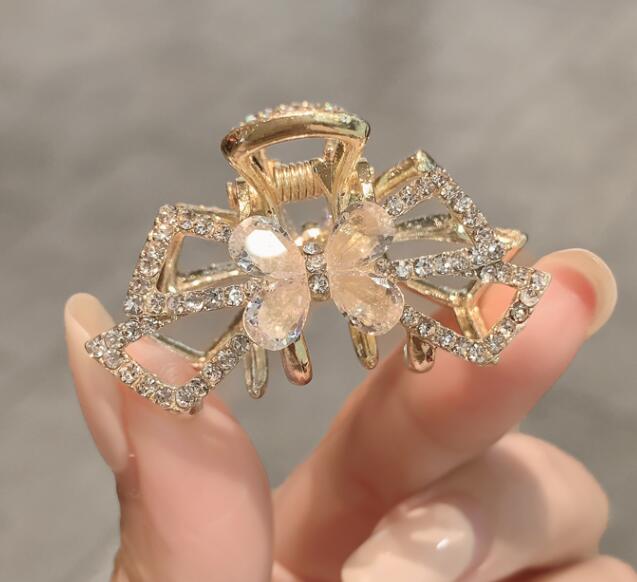 蝴蝶结发夹夏头发夹子头饰后脑勺发抓女水钻优雅小号侧边碎发抓夹